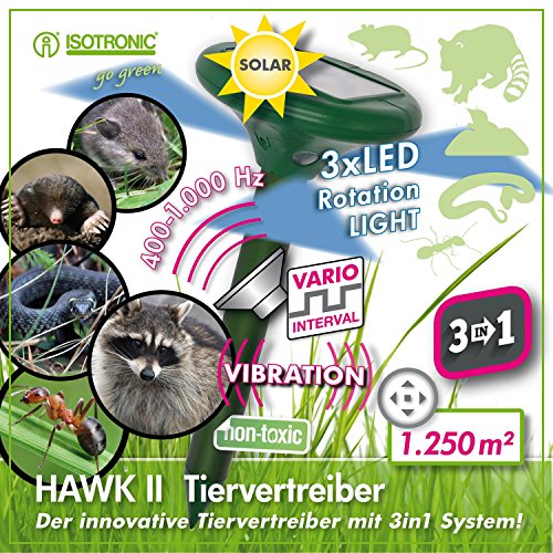 Isotronic Solar Mole Repellent Vibrasonic with Vibration Motor Set of 3 Solar Powered Vole Free Vole Repeller Vole Repeller Vole Repeller Vole Free Mole Repeller Plus Mosquito Repellent Bracelet