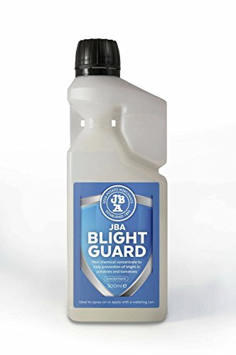 A brand new product developed for the prevention of foliar blight in tomatoes and potatoes. This a 100% natural product with no chemicals and is safe to use in your garden. Simply add 40ml of the JBA Blight Guard concentrate to 20 litres of water and either spray onto the foliage or apply with a watering can. Spraying is considered to be the best method of application as you need to spray the foliage on both sides of the leaf. The solution can also be made up in smaller batches of 10ml to 5 litres of water. You should use this product every 7 days during June - September to help combat the threat of blight. If you have a period of weather that's more likely to cause blight (Smith Period) then use the product at the time that period is forecast. Use any mixed solution within 48hrs of being mixed with water. This product will only help to reduce the chances of your crops getting blight and like any other product we can't guarantee that it will prevent blight in all cases.