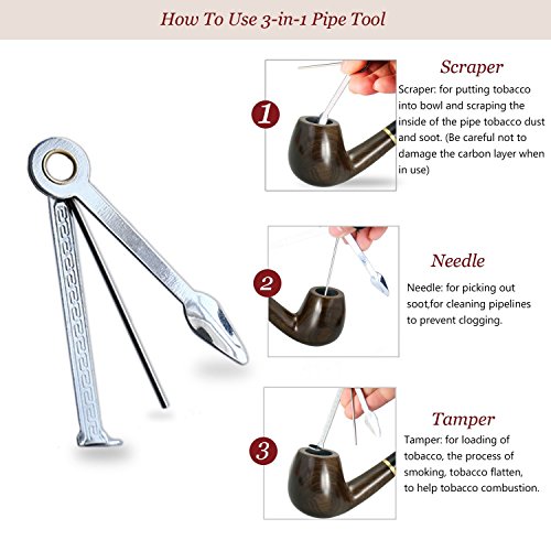 • 3-in-1 tobacco pipe cleaning kit - tamper reamer poker, Made of high quality stainless steel, Perfect to scrape the inside of the pipe tobacco dust, Soot, Prevent clogging.
