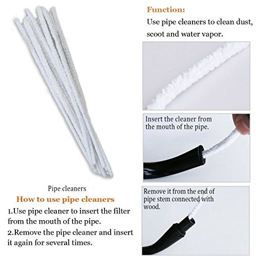 • Pipe Cleaners Are Made Of Thick Cotton, Easy To Use, Just Insert It In The mouthpiece. 9mm Active Charcoal Pipe Filters, It Absorbs Nicotine And Other Harmful Ingredients, Make The Taste Of Tobacco More Mellow, Offers You Great Smoking experience.
