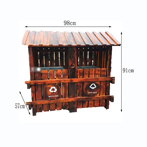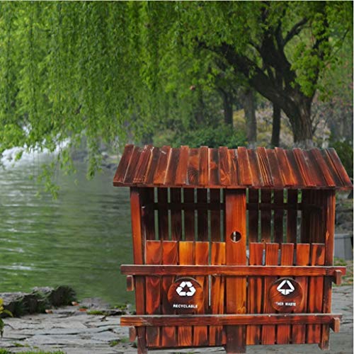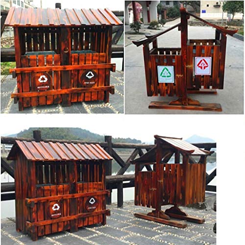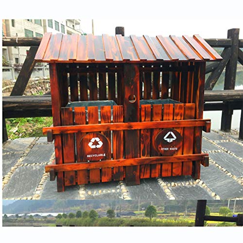 JIAQI Trash can FJZ Outdoor Trash Can Anti-corrosion Wood Trash Can Solid Wood Classification Trash Can Scenic Garden Garden Park Trash Can 46L High-end multi-function (Style : D)