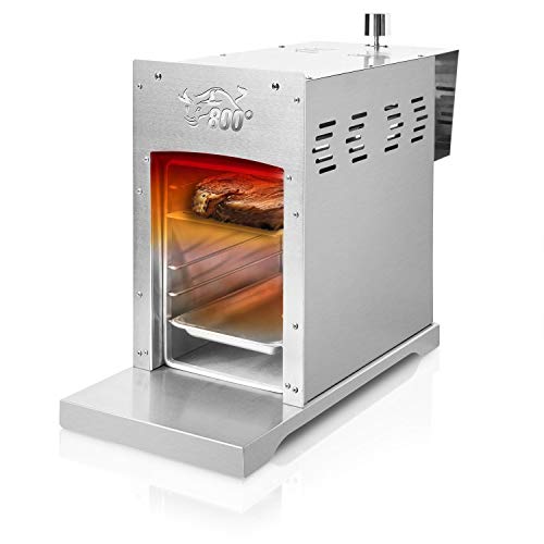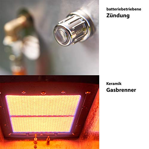 [800°C steaks with dream crust from the top heat gas grill!] The meat is exposed only briefly to the extreme heat of 800 °C and thus obtains a crispy crust. The juices and aromas inside the meat are sealed and preserved.