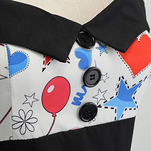 JUTREE Womens Hanging Neck Balloon Flag Printing Stitching Button Evening Party Charming Temperament Hepburn Dress(XL,Red) - Image 4