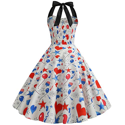 JUTREE Womens Hanging Neck Balloon Flag Printing Stitching Button Evening Party Charming Temperament Hepburn Dress(XL,Red) - Image 5