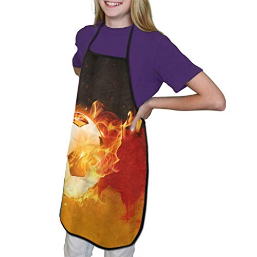 Kids Color Apron Flag Of The Germany Unique Fire Soccer Cook Apron For Kids Cook Apron Funny Waterproof With Pocket For Cooking Baking Painting And Party