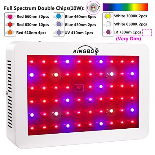 High Power Double Chips Design: Design with 60pcs 10watt super bright double chips LEDs, 90/120 degree mixed LED angle, higher PAR/Lumen output per watt than others, better for hydroponics greenhouse aquatic indoor plants growing, maximize growth.