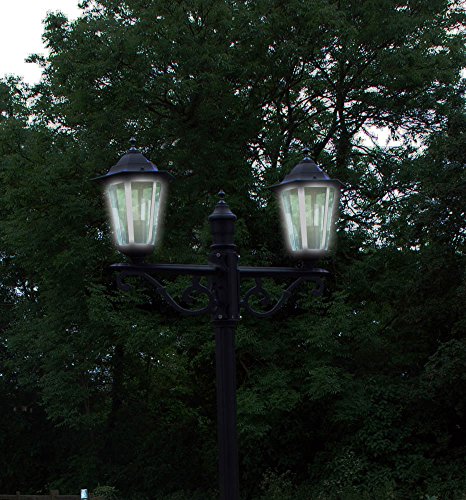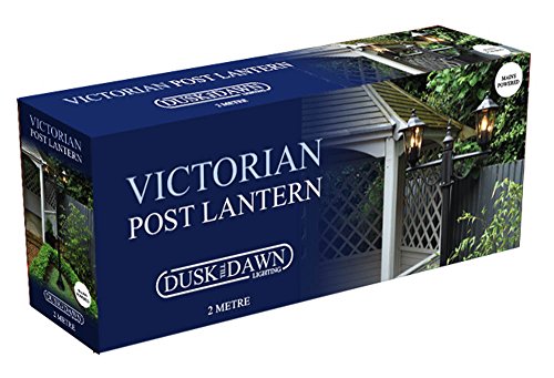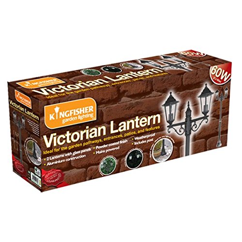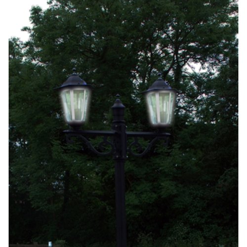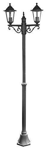Victorian style 2 head lamp post. Height - 2m x Width - 50cm x Depth - 20cm. Requires 2 x 60W(max) bulbs. 220-240V AC. Some assembly required.