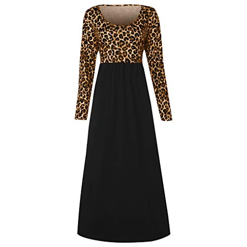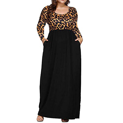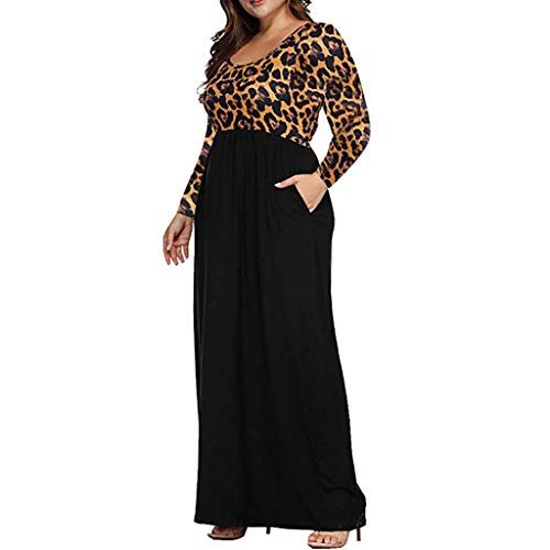 Kingwo Women Plus Size Maxi Dress,2019 Leopard Print Loose Dress O-Neck Long Sleeve Large Size Casual Pockets Long Dress (XL, Brown)