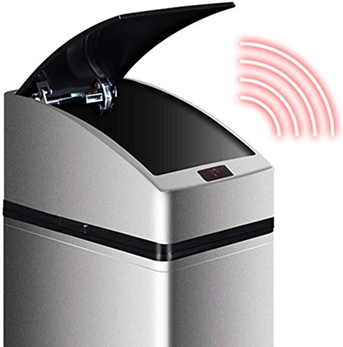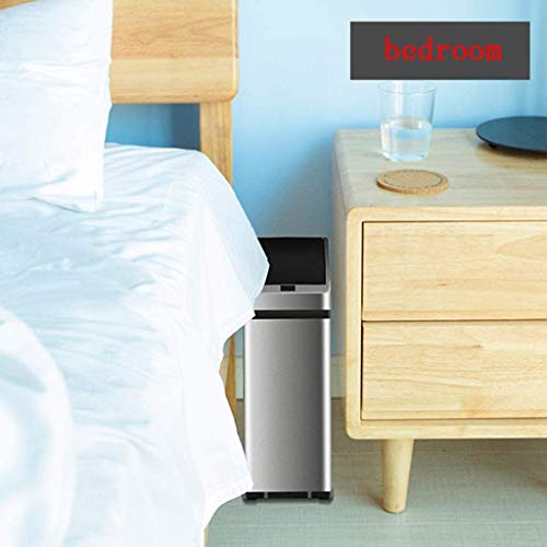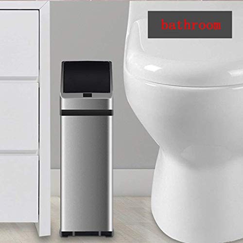 ktzhk Trash Can Smart Household Square Narrow Small Space Toilet Bedroom Table Dresser Small with Cover Space (Color : Silver, Size : 18.51140CM) (Silver,18.5 * 11 * 40CM)