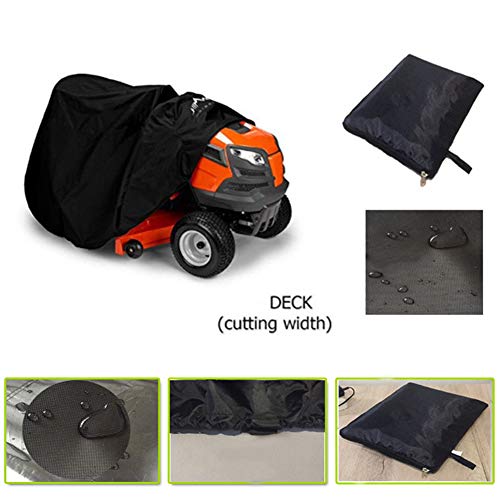 • 【Design】- With Adjustable drawstring lock closure, Nylon hook loop tape and Double thread sewing process, assures the cover is covering tight fit around the garden tractor to prevent it from being blown away during windy days.Tractor Cover is the best choice for protecting your lawn mower.