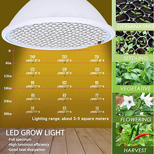 【Brighter,Not Hurt the Plants and Eyes】It can effectively increase fruit yield, improve fruit quality, and make the fruit even and full. Excellent heat dissipation and energy saving, 30W plant bulb adopts metal aluminum heat sink shell, which can maintain proper temperature at any time, effectively promote plant growth and protection.