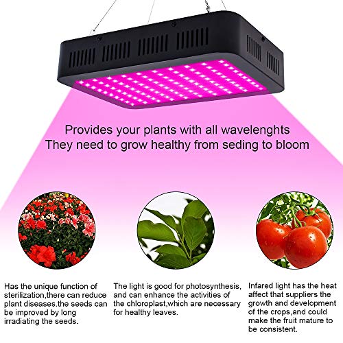 • ☀Low Heat - ABS plastic material molding hydroponic grow lights panel , excellent Heat control, runs cool and quiet, no harm to your plants. Square shape design maximizes the beam to cover 3ft by 3ft area of plants, recommended to hang at around 6-10 inches for seedling.
