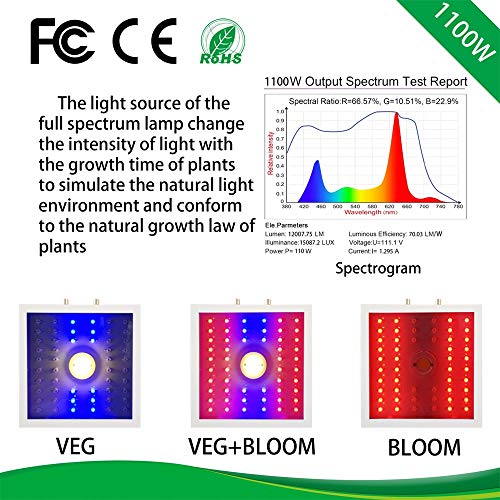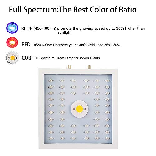 [70% energy saving than HPS / MH] Due to scientific design and advanced LED chips, this COB growth lamp consumes only 110W per hour, saving more energy than HPS or MH lamps. Global voltage: 85v-265v, plug and play. COB LED planting lights create a healthy environment for your lovely plants.