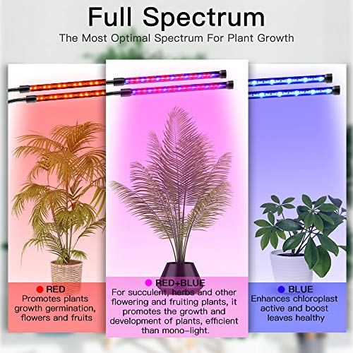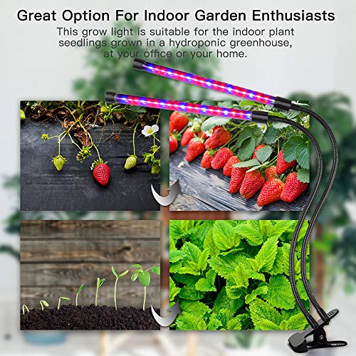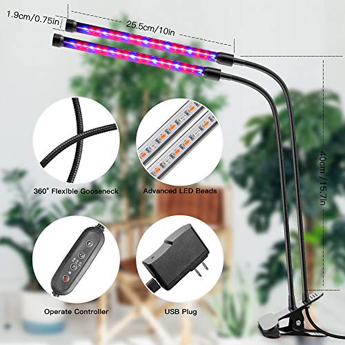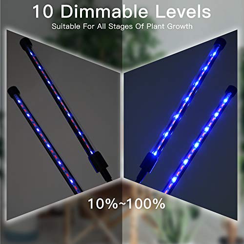 【10 Dimmable Level Modes+3 Lighting Modes】Upgraded version dual head gooseneck grow lamp with 10 levels dimmable light (10%-100%), provides more brightness options for all your plants growth stages, which is better than other growth lamps with lower brightness levels. 3 lighting modes(blue, red, blue+red) , you can switch them freely to meet your plants growing different stages needs.