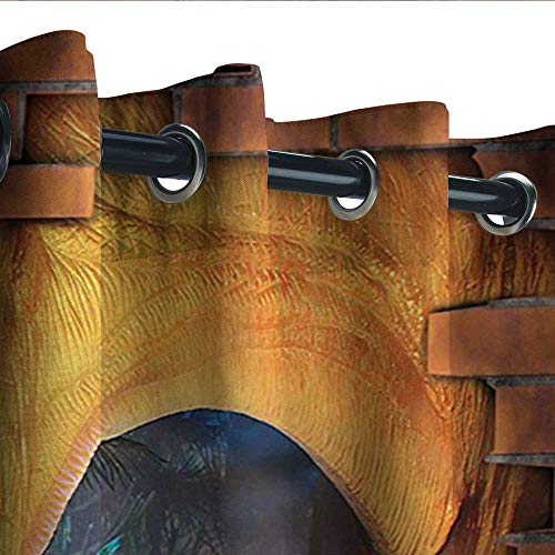 leinuoyi Dinosaur, Outdoor Curtain of Lights, Tyrannosaurus Breaks a Brick Wall Frightening Scary Scenery Jungle Invaded House, for Patio W84 x L96 Inch Orange Blue - Image 2