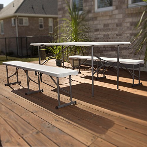 The lightweight design makes it simple to store and easy for anyone to set up and take down. The bench is UV-protected, will not crack, chip, or peel, and is built for indoor and outdoor use. Ideal for soccer games, pool-side activities, and more, Lifetime's Fold-In-Half Bench is the perfect addition to your home.
