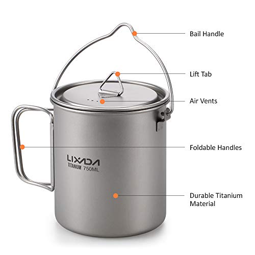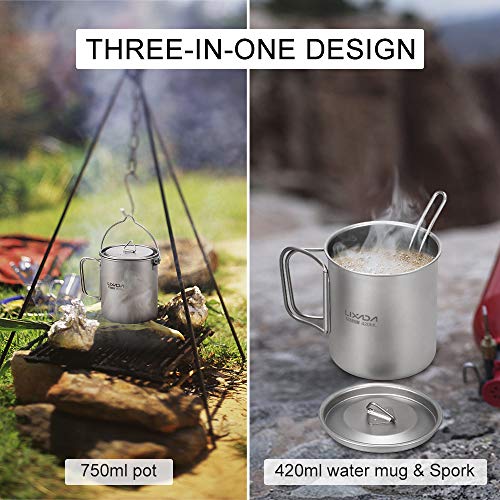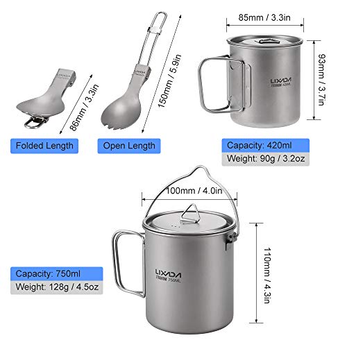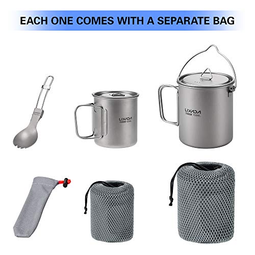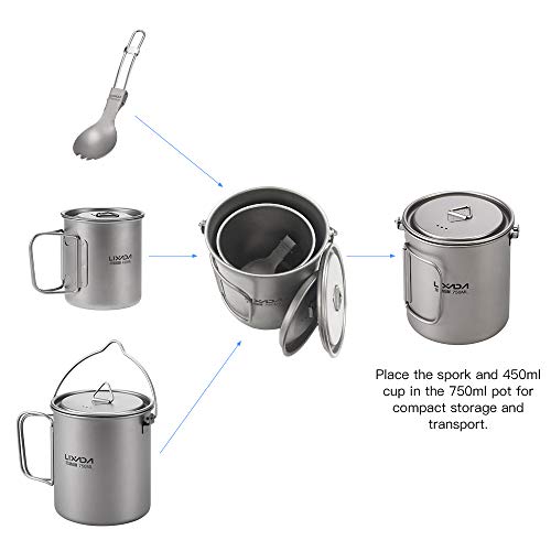 【3 Pieces Set】- Full titanium set includes a 750ml pot, 420ml cup and a folding spork, great for camping, hiking, backpacking, outdoor adventure and survival.