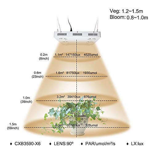 ☀Highly hang the lamp will weaken the energy and affect the growth cycle of the plants, so the lamp should not be hung too high. At same time, don't hang the light to plants too close, or it will damage plants. About 0.8~1.2 meters height is a good choic