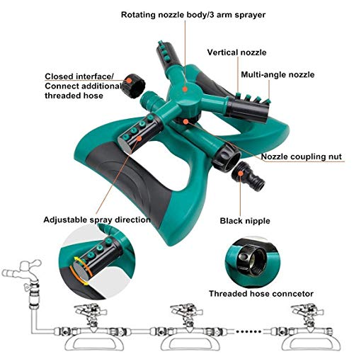 madeking garden Sprinkler, Automatic 360 Rotating Adjustable Garden Water Sprinklers Lawn Irrigation System Covering Large Area with Leak Free Design Durable 3 Arm Sprayer, Easy Connection