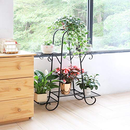 Wide use: This iron flower pat holder can be used to hold 6 pots plants, you can place flower racks in doors and outdoor.Like garden, balconies, hallway, patios,Living Room, Sunny Window, Screened Patio decks, can be used as book shelf, shoe shelf.