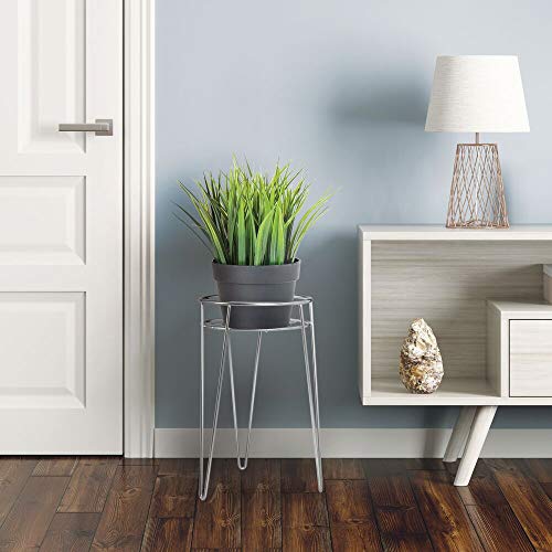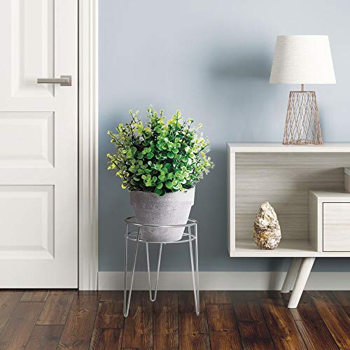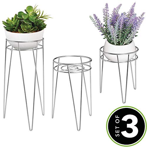 mDesign Midcentury Modern Flower Pot Stand, Metal Succulent and Plant Pot Holder - Minimalist Outdoor & Indoor Plant Holder - Hairpin Legs - Sturdy - Silver