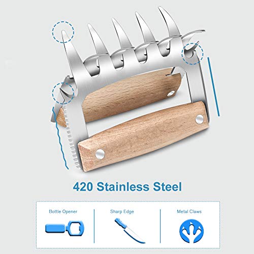 【5 In 1】The new design with Five fuction in one tool makes it convenient to take and store. Very robust construction quality and the small knives at the end are just sharp enough to tear the meat.