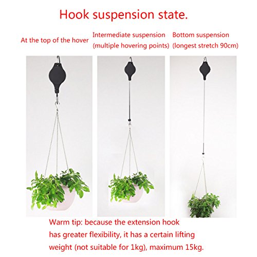 Amazing Flexibility: You are able to raise and lower the plants very quickly with this plant pulley, which can hover at any position you need, with more than ten fixed points available in a 90cm range. This also will bring your plant off the ground so you cats and dogs can¡¯t destroy your plants