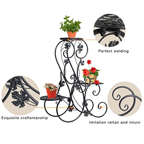 ✿Durable & Rust-resistant - High quality indoor potted plant stand rack is made of solid wrought iron, with electrostatic spraying, is antirust and strong enough to hold 3 large pots safely.