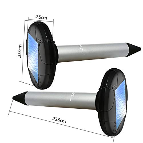 • This mole deterrent has high-spec solar panels and an aluminum pole