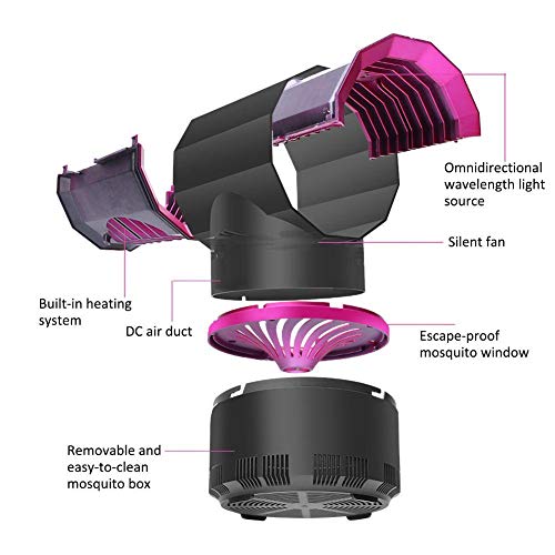 1.Easily kill mosquitoes: The 365nm bionic violet light wave enhances the attraction of mosquitoes through the human bionics technology, enabling precise mosquito trapping. It has a built-in streamlined 360-degree suction fan, and mosquitoes approaching the flight from any direction will be sucked into the insect trap, and died by the dehydration of air flow, very effective.
