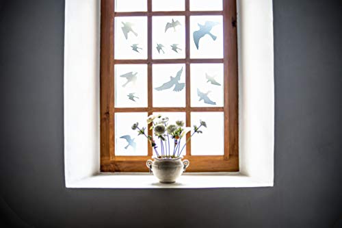 Window alert - Because the birds can't see glass! Help prevent bird strikes. Glass panels, patio doors or bay windows can act like mirrors with the sun rays reflection, our clings help prevent bird strikes.