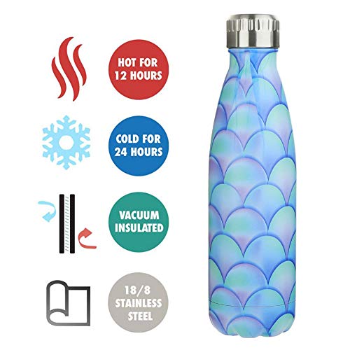 UNIQUE DOUBLE-WALLED DESIGN: Our insulated water bottle featuring double-walled vacuum insulation technology maintains temperature and keeps your drink cold up to 24 hours, or hot up to 12 hours