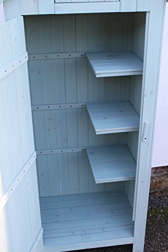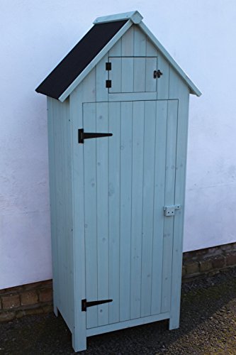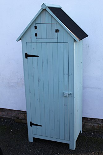 Garden storage building ideal for tools, fertilisers, clothes or other general items. Waterproof heavy duty felted roof, wooden door latch. Made from timber treated in a sage green colour water based wood preservative, we would recommend treating again once every other year to keep it in good condition. Overall dimensions: 68cms wide, 51cms deep and 120cms tall. Single large door 122.5cms x 51.5cms, 3 shelves on the inside. The base of the shed is 66cm wide and 46cm deep. Please note that this item is flat packed. Our Delivery charge is for mainland England, Wales and Southern Scotland. For the Highlands and off shore destinations please contact us for a quote.