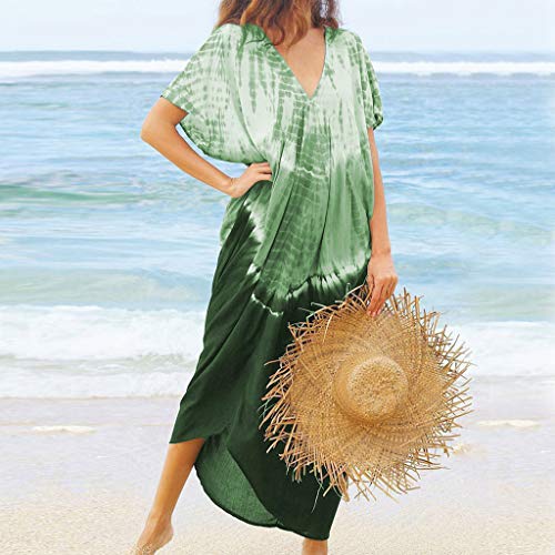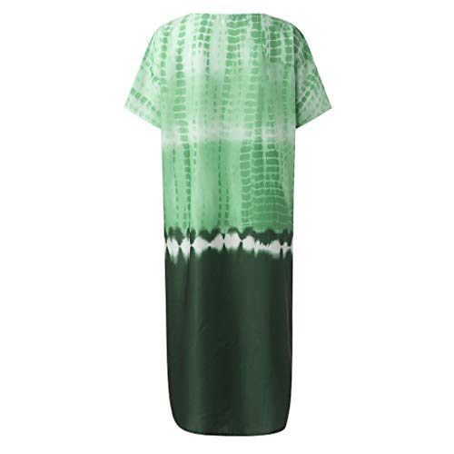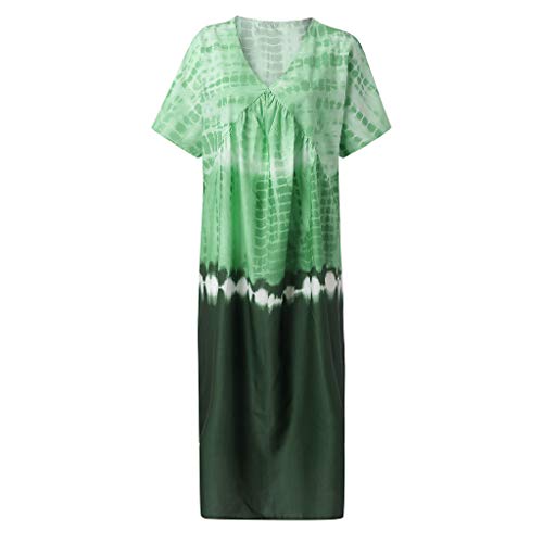 pitashe Women's Dress V-Neck Gradient Color Short Sleeve Midi Dress Loose Baggy Printed Dress Casual Summer Ladies Beach Dress Sundress Green