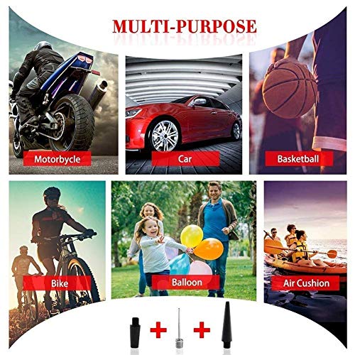 ★️️ Wide Application : Air pump inflates tires automatically for cars, bikes, motorcycles, RV, SUV, ATV and truck. Also, sports equipment and inflatable adaptors included. Also can be used to inflate airbed, airboat, air cushion, basketball, volleyball and other balls with a power adapter
