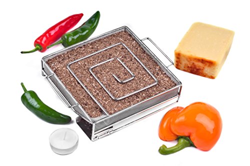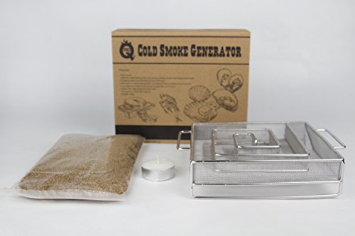 As seen on Channel 4's Gadget Man TV Series, Our patented ProQ® Cold Smoke Generator is a great little gadget that makes cold smoking easy to do and affordable. Released in 2010 it is now used by top chefs, fishermen, hunters and "foodies" around the world to add a wonderful smoky flavour to foods such as fish (Salmon, Haddock, Kippers, etc), bacon, hams, eggs, cheeses, beef, venison, salami, butter, salt and nuts. The ProQ Cold Smoke Generator is designed to produce smoke for up to 10 hours, using ProQ smoking wood dust which is of a high quality and sourced from sustainable forests (other brands of dust may not produce the same results). Our original CSG is most effective in containers that have a capacity of between 30 Litres - 150 Litres - The ProQ® Eco Smoker (33 Litres) and Frontier (105 Litres with 2 stackers) are ideal. Please ensure that this unit is not used indoors, it can create concentrations of carbon monoxide which is odourless and can be deadly if inhaled. Use in a well-ventilated area out of wind and rain. Always remove the tea-light candle used to light the cold smoke generator once the dust has begun smouldering, the candle must be removed before inserting the generator into your chamber.