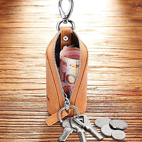 Pure Color Leather Key Case Key Chain Bag Zipper Case Wallet Car Key Holder, Green - Image 1
