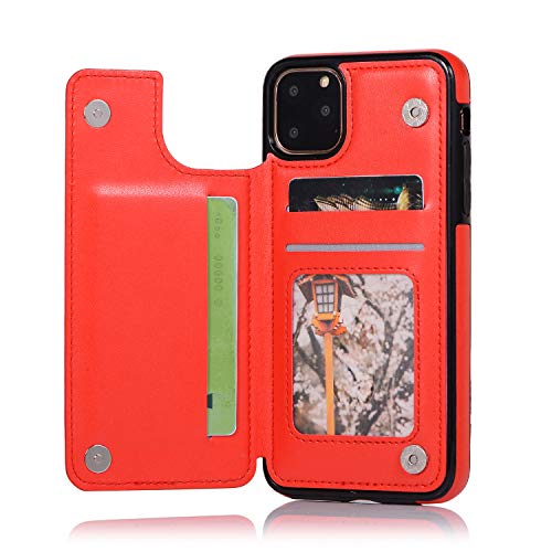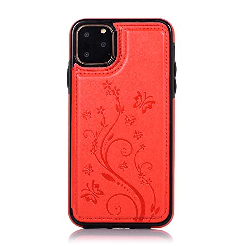 QFUN Back Wallet Case for iphone 11 Pro Max with Stand, Elegant Embossed Design [Butterfly Flower] Lightweight Slim Fit Leather Phone Case with Card Holder Protective Bumper Flip Cover - Red