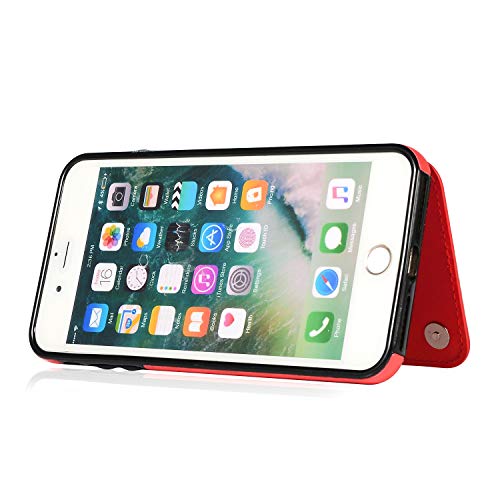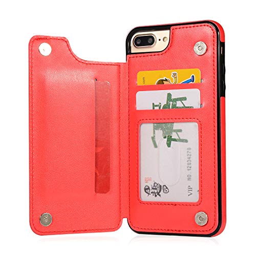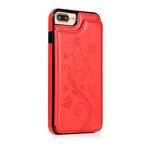 QFUN Back Wallet Case for iphone 7 Plus/8 Plus with Stand, Elegant Embossed Design [Butterfly Flower] Lightweight Slim Fit Leather Phone Case with Card Holder Protective Bumper Flip Cover - Red