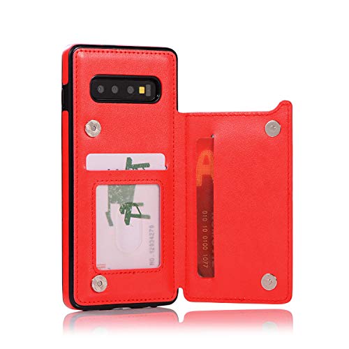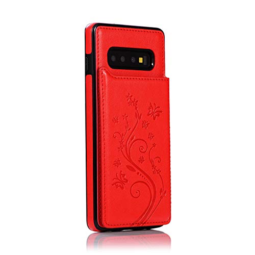 QFUN Back Wallet Case for Samsung Galaxy S10 Plus with Stand, Elegant Embossed Design [Butterfly Flower] Lightweight Slim Fit Leather Phone Case with Card Holder Protective Bumper Flip Cover - Red