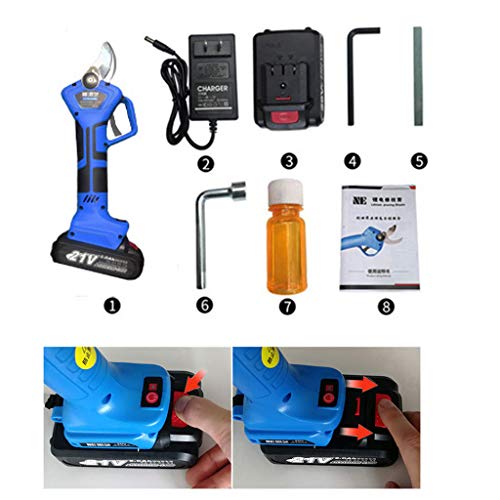 [Package and Warranty]--1 x cordless pruner, 2 x backup batteries, 1 x spare blade,2 x wrench tool,1 x charge adapter,1 x storage box. Warranty: 18 Months, 7 x24 hours service.