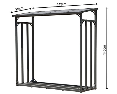 Material: steel / aluminum, anthracite (RAL7043) painted. Roof made of polycarbonate panels 6mm. Roof frame aluminum: 15x39mm legs steel: 40x40mm. The side panels and the entire subframe are made of powder-coated steel for high stability