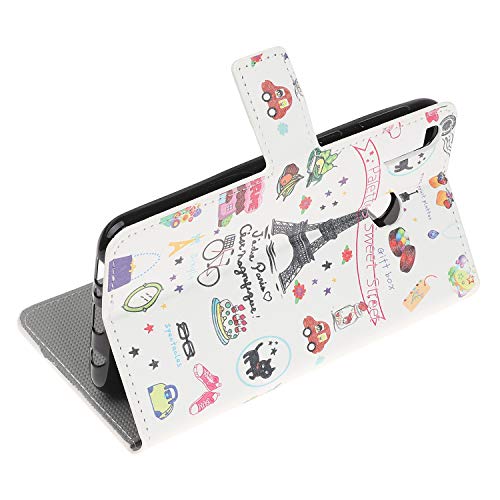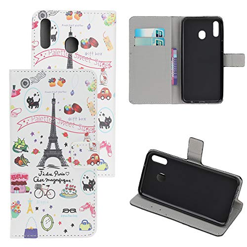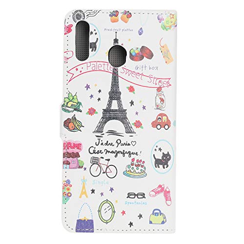 Reevermap Samsung Galaxy A40 Case Flip, Protective Soft Wallet Notebook Colorful Painting Leather Stand Magnetic Cover with Card Holder for Samsung Galaxy A40, Eiffel Tower