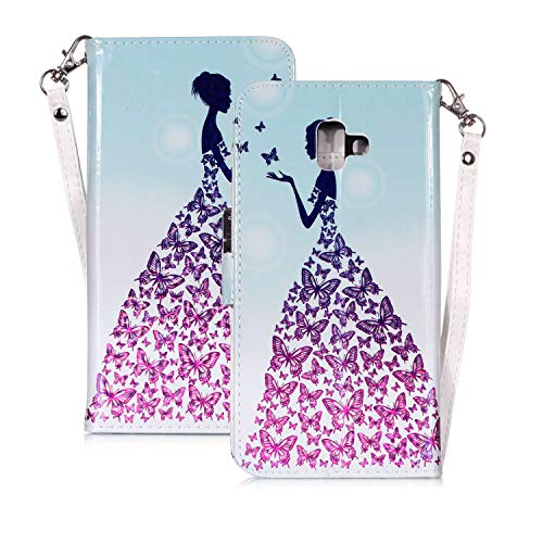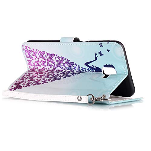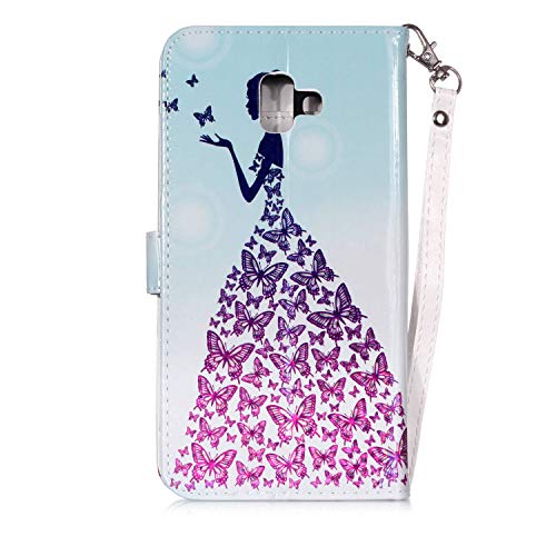 Reevermap Samsung Galaxy J6 Plus Case Glitter PU Leather Shiny Bumper with Card Holder, Protective Flip 3D Cover for Samsung Galaxy J6 Plus Wallet Kickstand Magnetic Closure, Butterfly & Girl