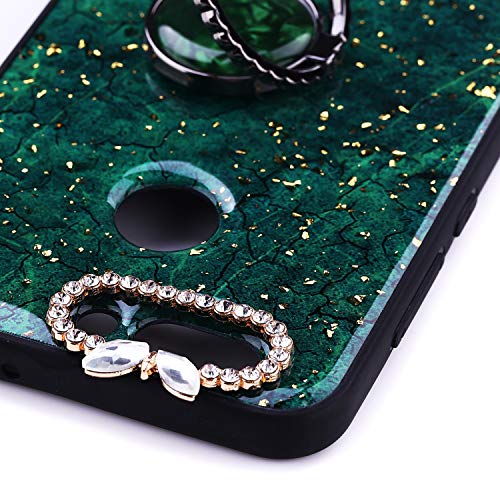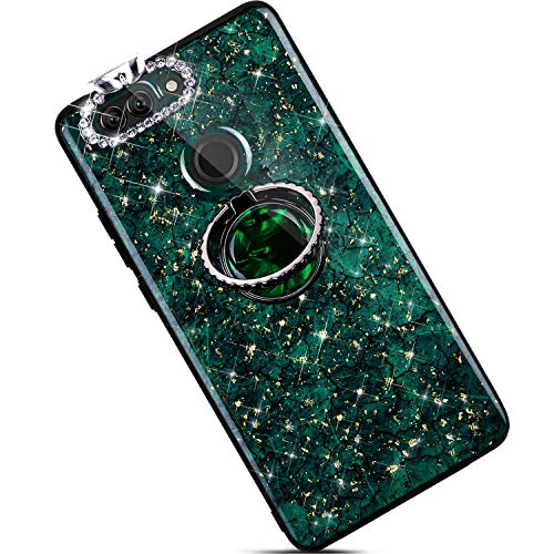 Robinsoni Case Compatible with Huawei Nova 2 Plus Phone Case Silicone Glossy TPU Cover 360 Degree Rotation Ring Case Kickstand Phone Cover Sparkle Bling Phone Cover Shockproof Case Amber Green
