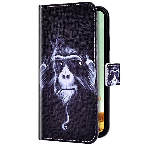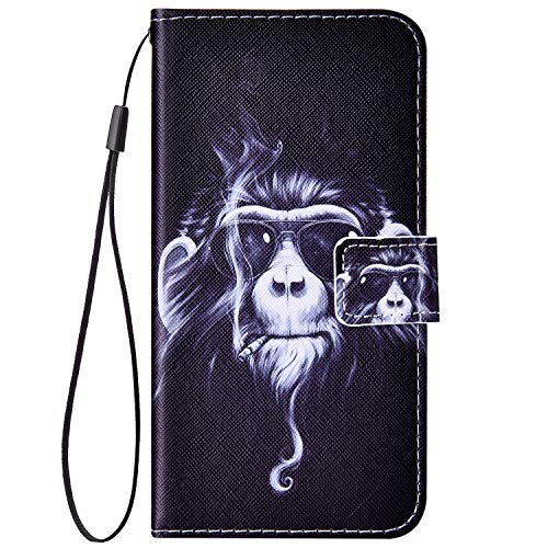 Robinsoni Case Compatible with Huawei P Smart Cover PU Leather Case Folio Flip Wallet Cover with Kickstand Hand Strap Case Cartoon Notebook Cover Wallet Case for Huawei Honor 10 Lite,King Kong