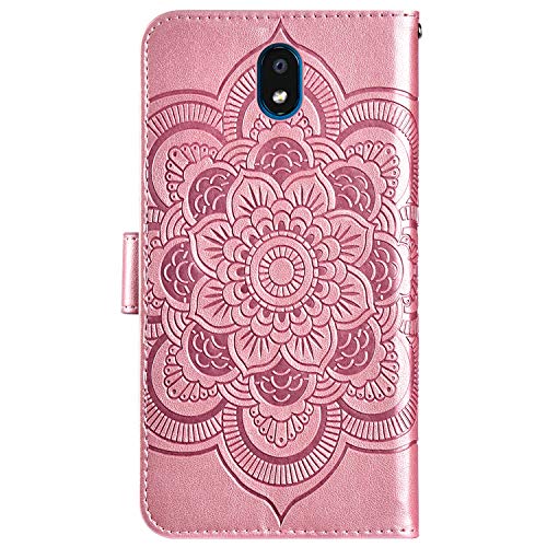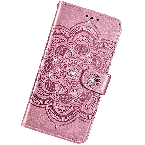 Robinsoni Case Compatible with LG K30 2019 Shiny Case Sparkle Glitter PU Leather Wallet Cover Lavish Bling Diamond Embossed Mandala Printed Book Case Folio Flip Glossy Magnetic Case Roes Gold