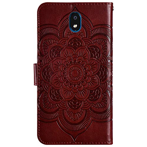 Robinsoni Case Compatible with LG K30 2019 Shiny Case Sparkle Glitter PU Leather Wallet Cover Lavish Bling Diamond Embossed Mandala Printed Book Case Folio Flip Kickstand Glossy Magnetic Case Brown