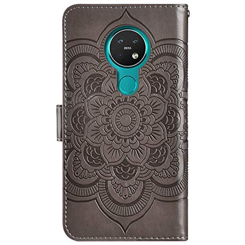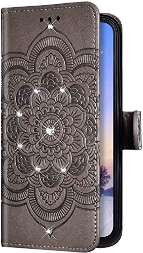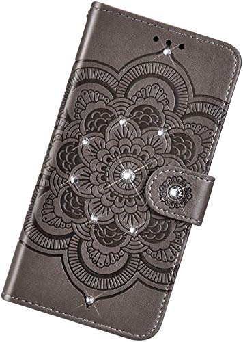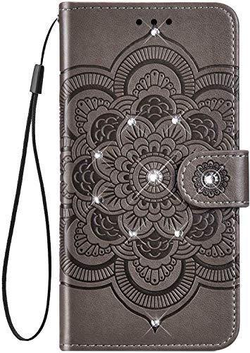 Robinsoni Case Compatible with Nokia 7.2 Shiny Case Sparkle Glitter PU Leather Wallet Cover Lavish Bling Diamond Embossed Mandala Printed Book Case Folio Flip Kickstand Glossy Magnetic Case Grey
