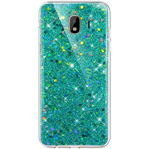 Robinsoni Case Compatible with Samsung Galaxy J4 2018 Cover Flexible Samsung Galaxy J4 2018 Case Silicone Bling Case Soft Silicone TPU Case Glossy Gel Rubber Cover Sparkle Ultra Thin Cover, Green
